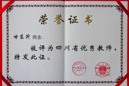 2013年8月甘東升被評(píng)為“四川省優(yōu)秀教師”