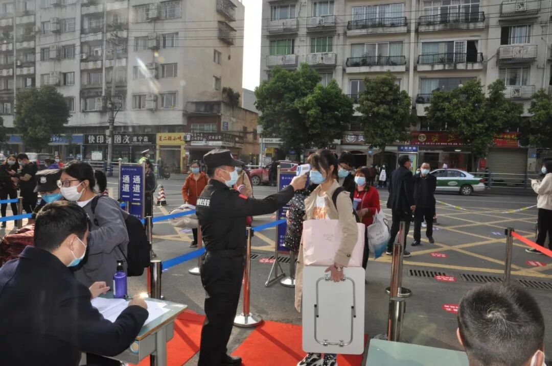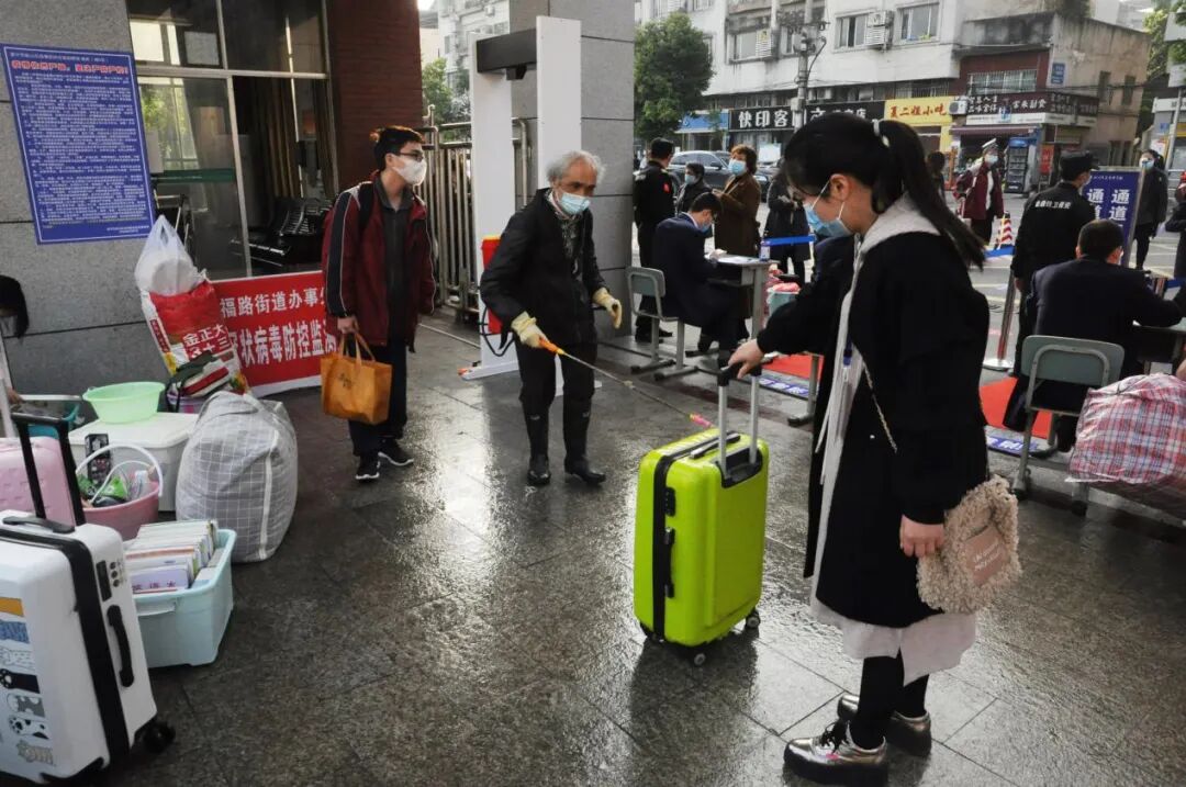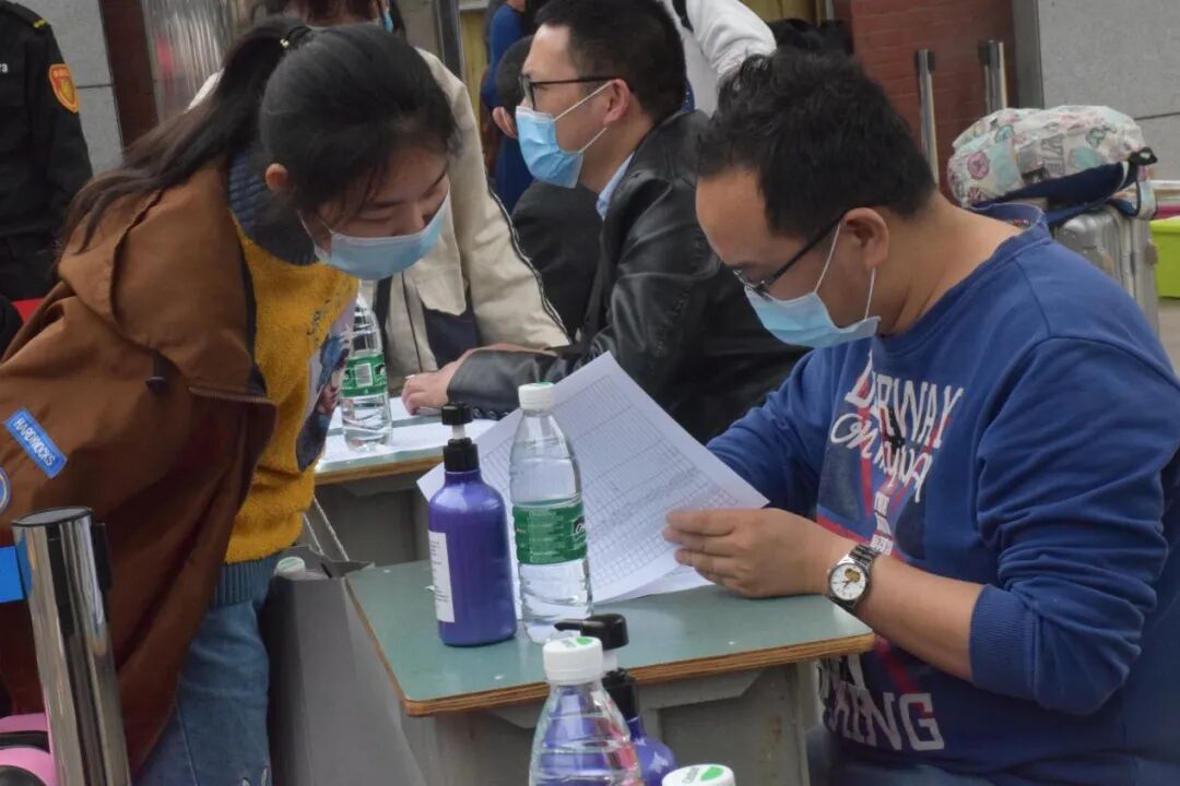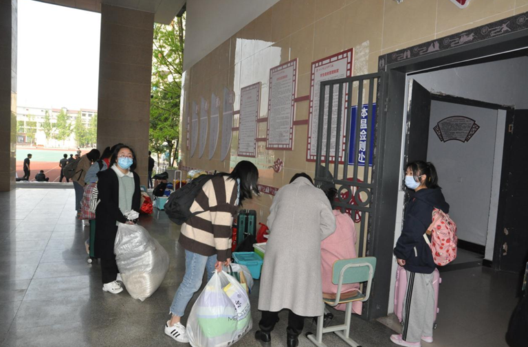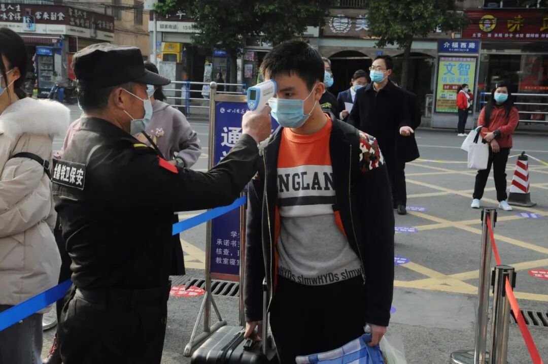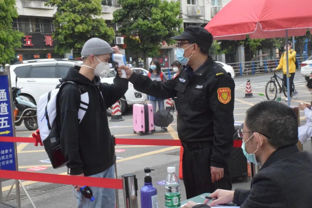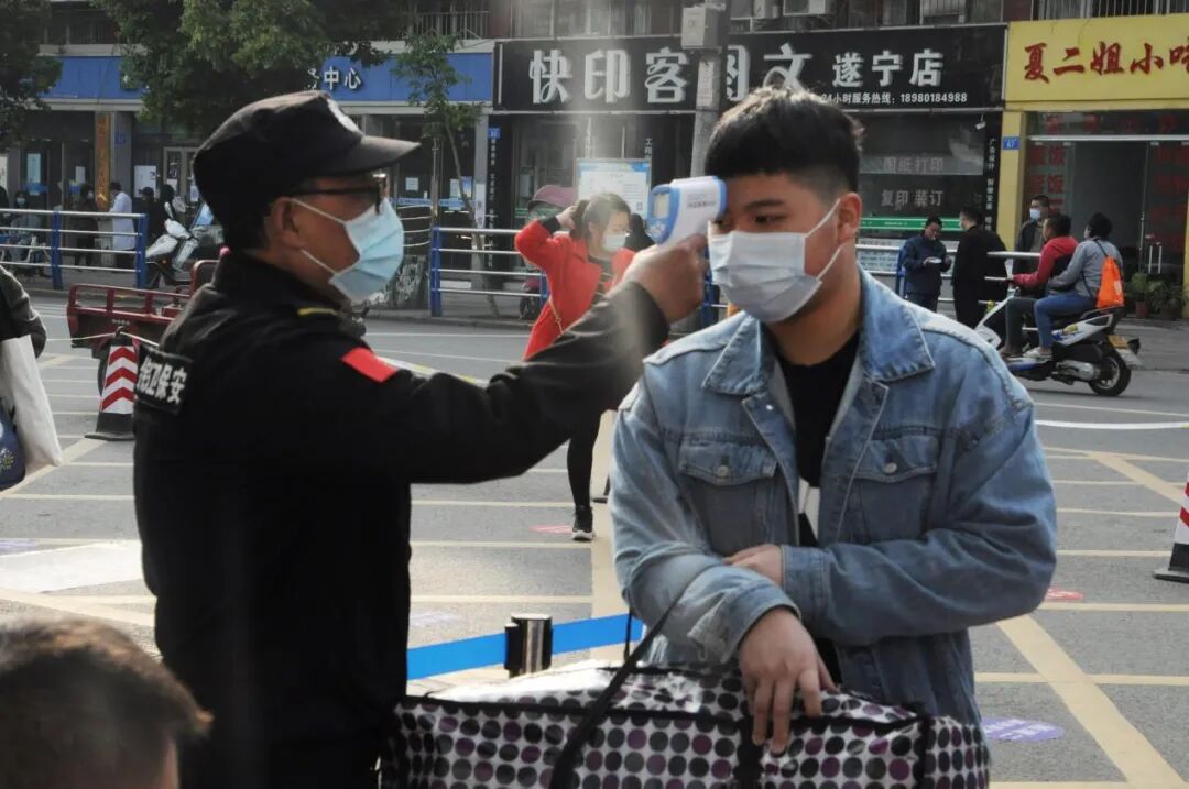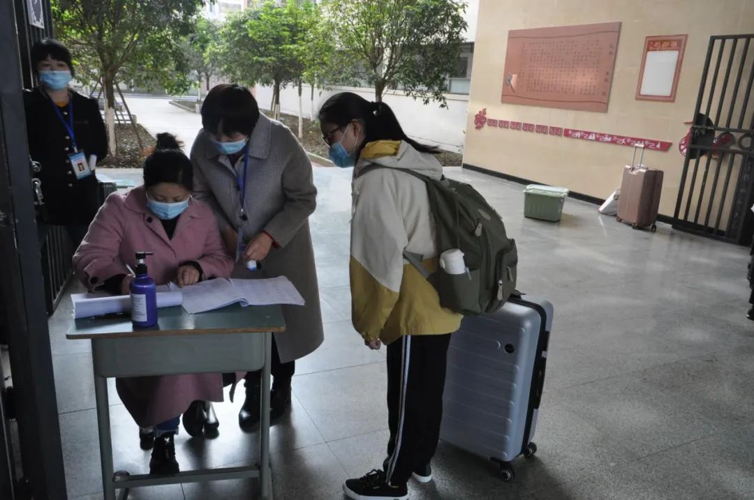 遂寧中學(xué)介福路校區(qū)嚴(yán)格執(zhí)行年級錯時到校制度,禁止家長車輛入校。入校時,學(xué)生們在體溫檢測通道保持每人間隔不低于1米的距離依次排隊,接受體溫測量與登記。無異常者按照要求洗手消毒及行李消毒,并將健康卡、防疫承諾書交到班主任處。體溫異常者(≥37.3℃),將被帶至復(fù)檢區(qū),再次接受復(fù)測、留觀、隔離、消毒等各項措施。