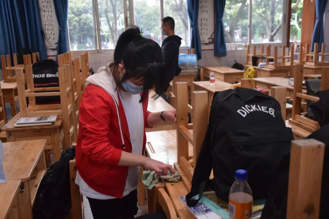 教室是學(xué)生最重要的活動區(qū)域,是防疫工作中的重中之中。學(xué)生進(jìn)入教室,需一日三次(早、中、晚)復(fù)檢體溫并登記,班主任將每日按時上報數(shù)據(jù)。上課期間,加大課桌的間隔距離,減少交流,錯峰上下課,注意開窗通風(fēng),環(huán)境的清潔衛(wèi)生。同時,班主任及科任老師也將密切注意班上的學(xué)生是否身體不適、是否缺勤情。如發(fā)現(xiàn)體溫異常,對應(yīng)的班主任、班長、巡視老師、上課老師立即啟動應(yīng)急處置預(yù)案。