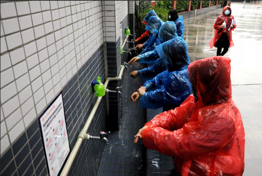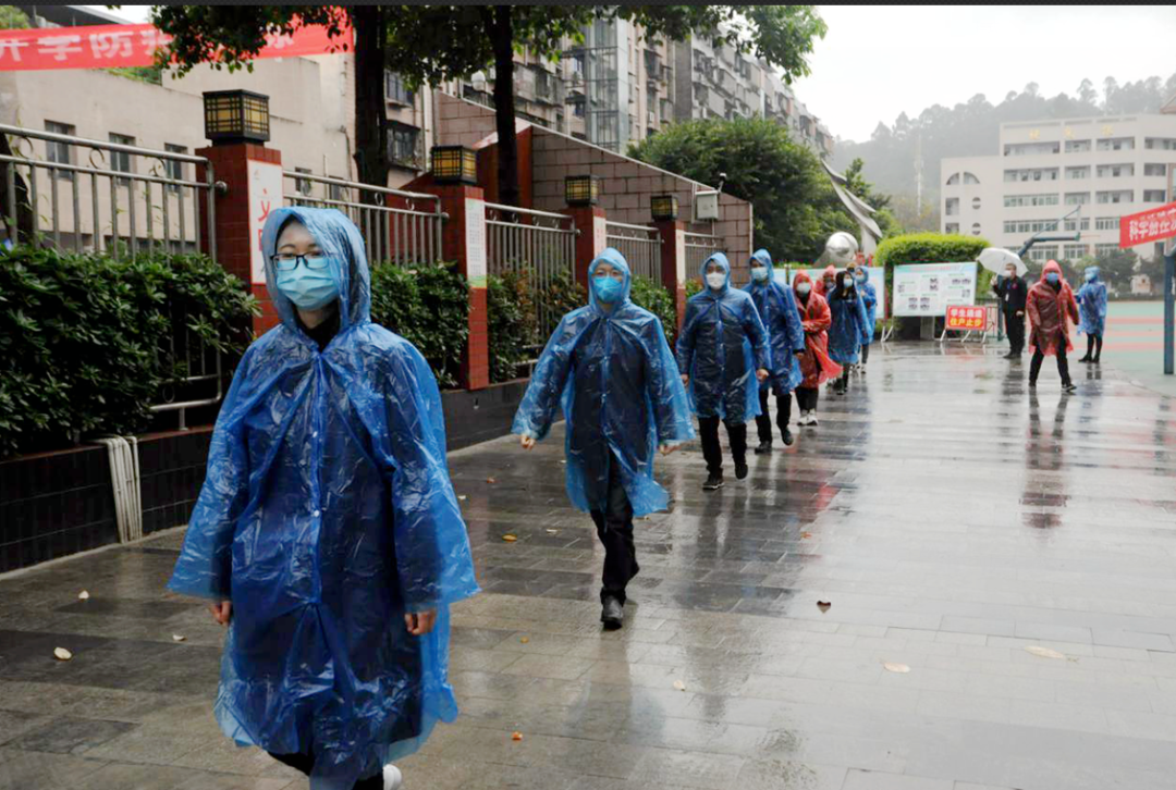 當(dāng)遇到學(xué)生體溫異常(≥37.3℃)的突發(fā)情況,老師先帶學(xué)生進(jìn)入臨時(shí)隔離室,如有流行病學(xué)史,報(bào)告學(xué)校防控小組領(lǐng)導(dǎo)討論,若為可疑病例,啟動(dòng)應(yīng)急預(yù)案,立即將相關(guān)情況向?qū)W校匯報(bào);并將全體同學(xué)轉(zhuǎn)移至備用教室,安撫學(xué)生情緒!皩W(xué)生”離開(kāi)后,消毒組對(duì)教室進(jìn)行消毒工作。