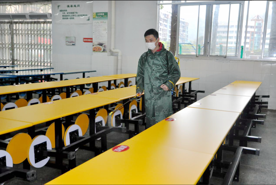 ▲對(duì)發(fā)現(xiàn)疑似病毒教室消毒