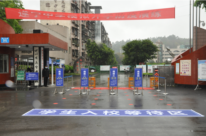 為進(jìn)一步規(guī)范疫情防控工作,增強(qiáng)協(xié)同配合及應(yīng)急處置能力,保障學(xué)校各項(xiàng)教育教學(xué)工作的有序開(kāi)展,4月2日,遂寧中學(xué)舉行模擬開(kāi)學(xué)防疫演練活動(dòng),力求演練做到全方位、全角度、精心化、精細(xì)化,為營(yíng)造健康良好的開(kāi)學(xué)環(huán)境做好充足準(zhǔn)備。遂寧中學(xué)黨委書(shū)記、校長(zhǎng)張東,遂寧中學(xué)黨委委員、副校長(zhǎng)、介福路校區(qū)負(fù)責(zé)人王凌,遂寧中學(xué)黨委委員、副校長(zhǎng)唐悅、柴文斌、徐華,遂寧中學(xué)副校長(zhǎng)何亞杰等校領(lǐng)導(dǎo),部分中層干部、年級(jí)管理、班主任、門衛(wèi)、男女生公寓管理員、部分食堂工作人員參與。