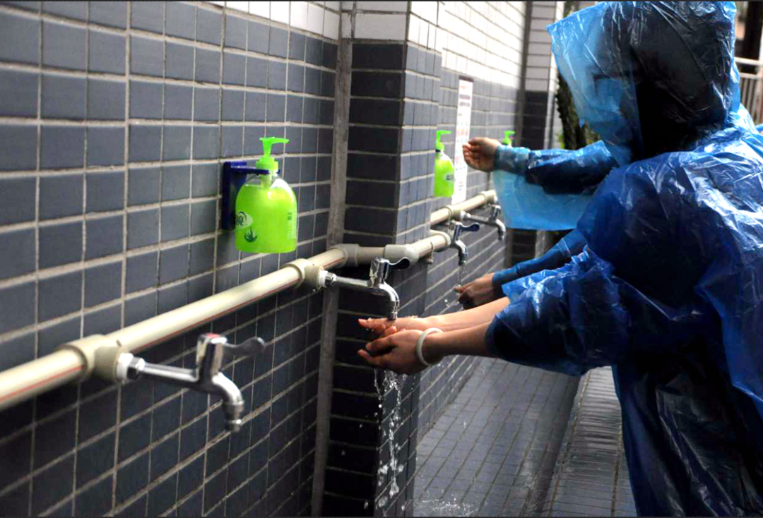 學(xué)校后勤人員每日仔細(xì)進(jìn)行衛(wèi)生打掃和宿舍消毒,做好通風(fēng)工作。學(xué)生進(jìn)入宿舍先檢測(cè)體溫,臨時(shí)調(diào)整為“腳對(duì)腳”臥床方向,避免呼吸交叉感染。一旦發(fā)現(xiàn)有異常,立即報(bào)告宿舍管理員,并根據(jù)突發(fā)疫情處置預(yù)案做好隔離、送診、消毒等工作。
