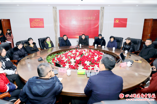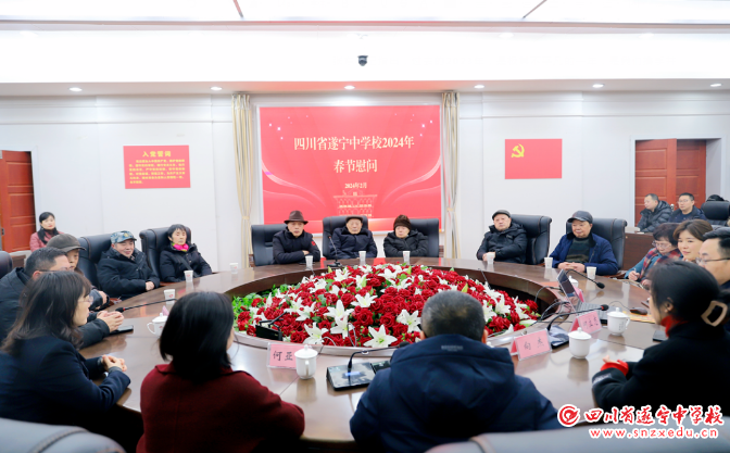 一年年斗轉(zhuǎn)星移,一載載芬芳桃李。在2024龍年春節(jié)來臨之際,2月1日上午,市委教育工委書記、市教育體育局黨組書記、局長王松到遂寧中學(xué)開展了2024年春節(jié)走訪慰問座談會(huì),對(duì)學(xué)校在職教職工、援彝援藏教師代表,老黨員、困難黨員,以及潼南區(qū)交流教師、貧困學(xué)生代表進(jìn)行了慰問,并為他們送去了新春的祝福。遂寧中學(xué)黨委書記張東,校長何亞杰,黨委副書記、紀(jì)委書記向杰,黨委委員、副校長楊蘭萍,黨委委員、副校長何立志,黨委委員、副校長宋貴源,黨委委員羅麗等領(lǐng)導(dǎo)參加座談會(huì)。