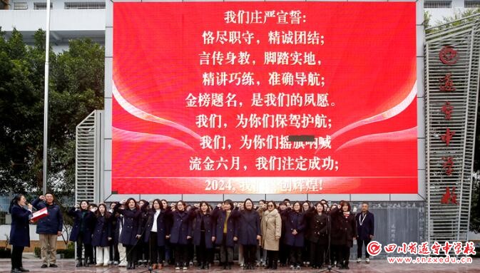 緊接著,師生們用慷慨激昂的百日誓言發(fā)出了備戰(zhàn)中考的最強音。錚錚誓言,似戰(zhàn)鼓,鏗鏘有力,振奮人心,表達了遂中育才校區(qū)初三師生挑戰(zhàn)自我、超越自我的斗志和決心。