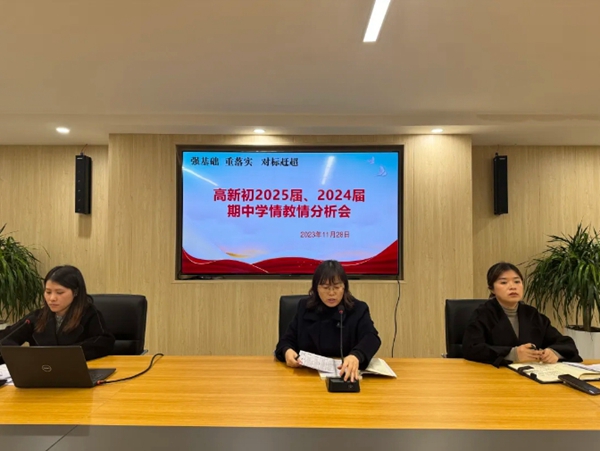 第三篇章高效務(wù)實(shí)的質(zhì)量分析會(huì) 教學(xué)質(zhì)量是學(xué)校的生命線,教與思結(jié)合是教學(xué)質(zhì)量提升的前提。為進(jìn)一步了解教情學(xué)情、明確下階段的努力方向,查找教育教學(xué)工作中的問題和不足,及時(shí)調(diào)整教學(xué)策略,推動(dòng)學(xué)校教學(xué)質(zhì)量穩(wěn)步提升,遂中高新校區(qū)還于11月28日召開了初二、初三年級(jí)期中學(xué)情教情分析會(huì)。學(xué)校黨委委員、副校長楊蘭萍,學(xué)校黨委委員,學(xué)校發(fā)展中心主任羅麗蒞臨指導(dǎo)。高新校區(qū)初二、初三全體教師參會(huì),會(huì)議由學(xué)校黨政辦主任,初二、初三年級(jí)主管盧文匯主持。